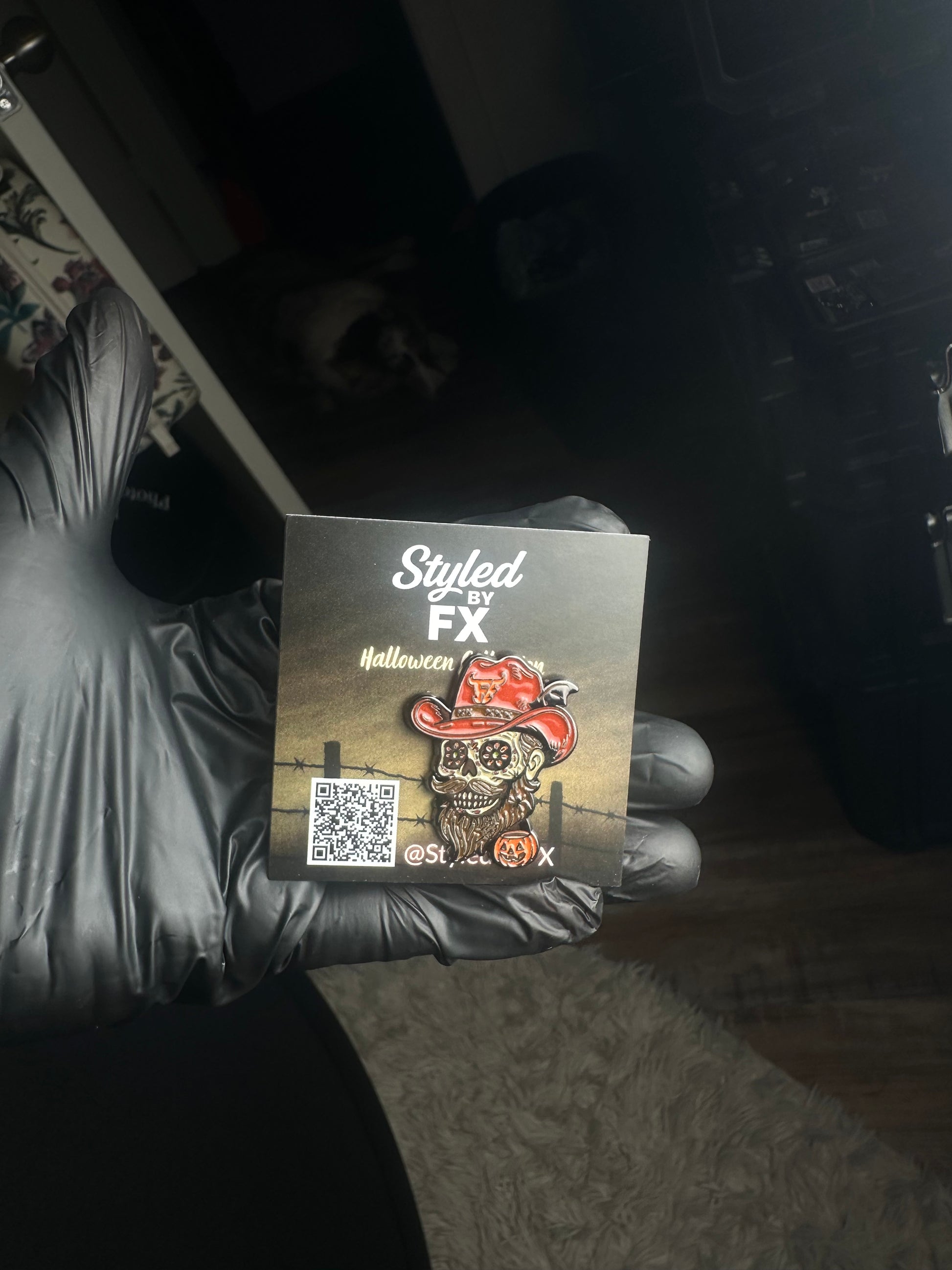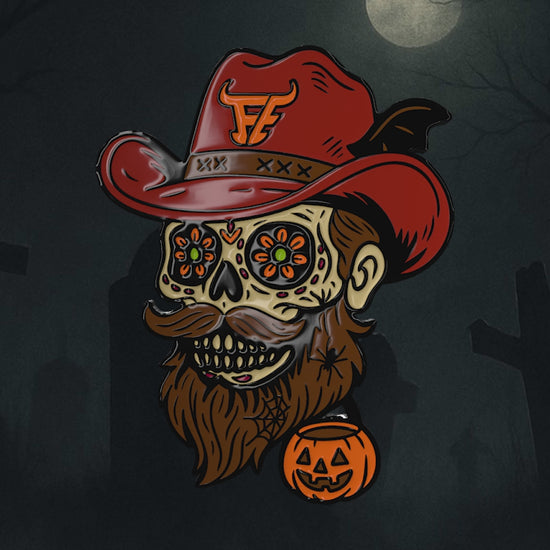 When the leaves fall and the air turns crisp, Jack-o’-Barrón rides out of the pumpkin patch with a fiery grin and cowboy charm. This fall-themed Vaquero Barrón design blends Halloween spirit with Western edge — a true collectible for anyone who lives for spooky season and southern grit.